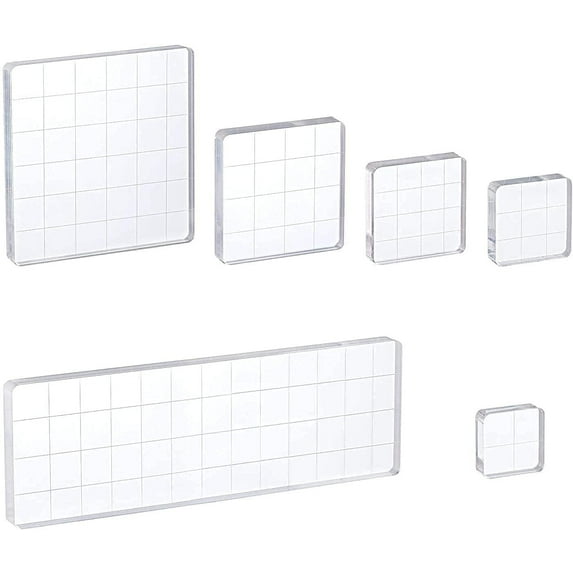 ?This set contains 6 different sizes of acrylic stamp blocks measuring 1.97 x 5.9 inches, 2.95 x 2.95 inches, 1.97 x 1.97 inches, 1.5 x 1.5 inches, 1.22 x 1.22 inches and 0.98 x 0.98 inches. Each acrylic stamp block is 0.3 inches thick.