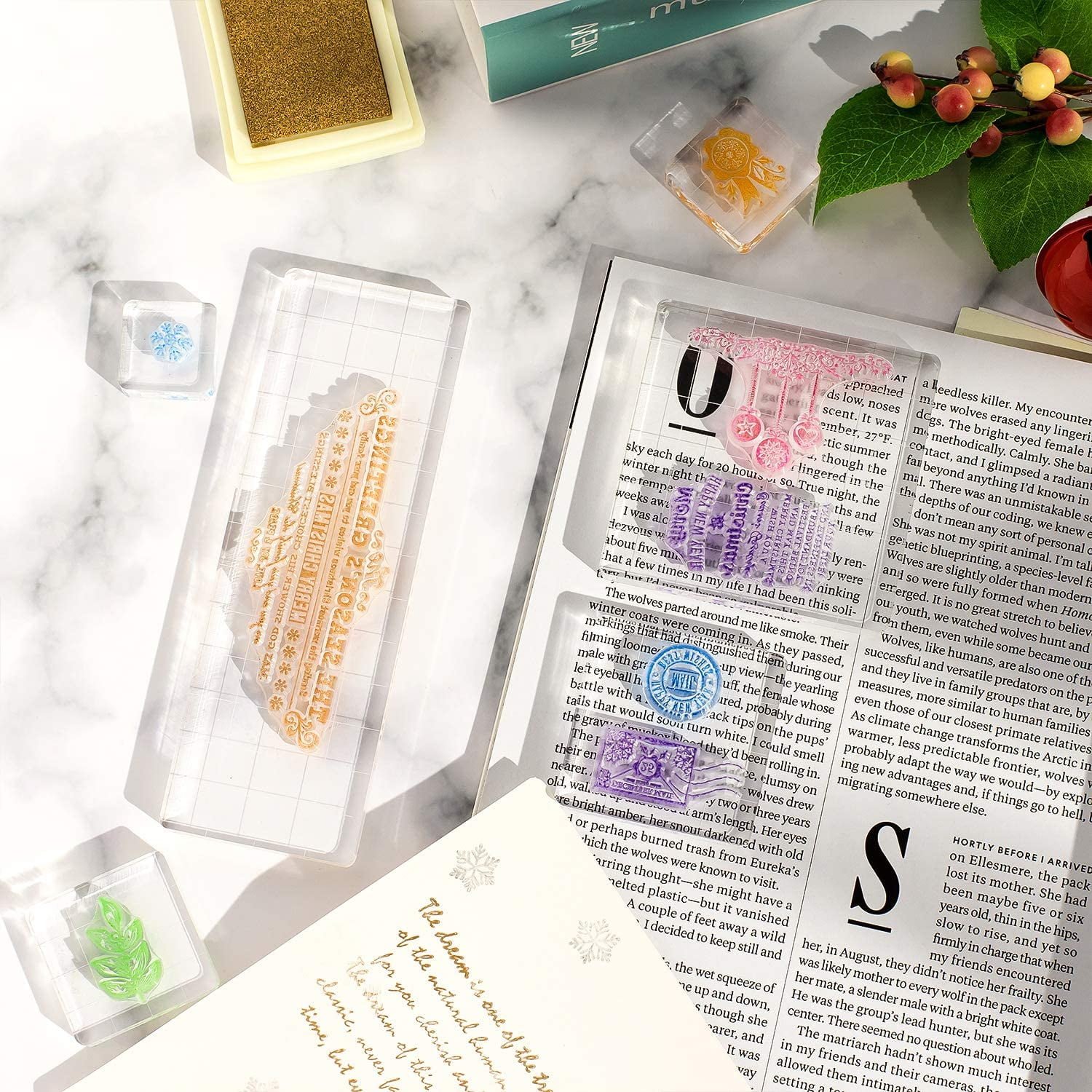 Our transparent stamp blocks are crafted from acrylic, highly translucent and sturdy, not easily broken or deformed, reusable and easy to clean, suitable for long-term use.