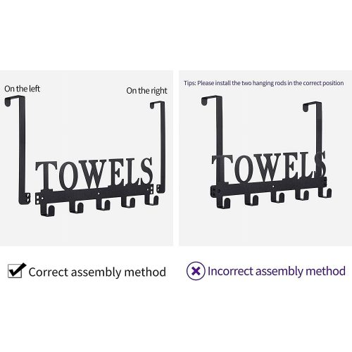 Assemble the towel racks and hang them on the door, making sure there is enough space above the door to fit a coin (about 1.5 mm). In addition, doors should be between 1.4-1.7 inches (3.5-4.5 cm) thick. Please check the product size before purchasing.